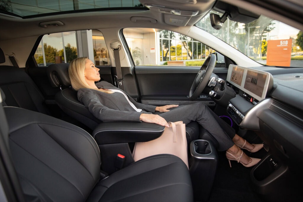 Z těchto poznatků vychází i tvar předních sedadel v interiéru IONIQ 5, která jdou sklopit téměř do roviny. Relaxační polohu sedadel si mohou cestující užít například během nabíjení. Pohodlná sedadla přispívají k dobré fyzické kondici a odpočatosti na cestách, což má vliv nejen na dobrou náladu, ale také na pozornost a tedy i bezpečnost.