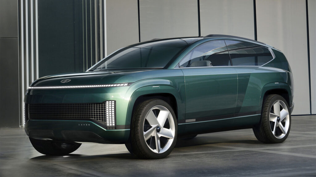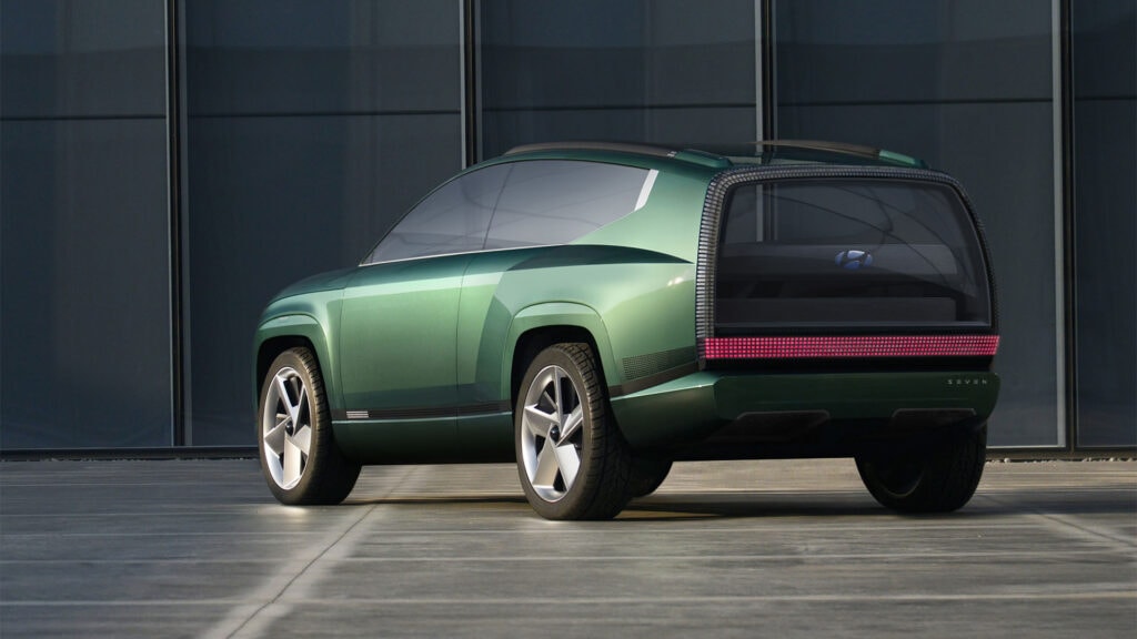 Sedmimístný Hyundai Seven (odtud anglický název sedm) je relativně mladý, ale možná trochu zapomenutý koncept velkého SUV. V roce 2021 nevzbudil takový rozruch jako dynamicky střižené Prophecy, ze kterého v roce 2022 vzešel sériový IONIQ 6, je však neméně důležitý. Ještě letos se totiž sériový Seven objeví na silnicích coby IONIQ 9.